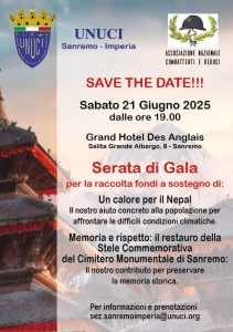 “La serata ha lo scopo di sostenere il progetto Un calore per il Nepal – spiega il presidente Unuci Colonnello Filippo Veglia– che ci vede impegnati nell’aiutare concretamente la popolazione per affrontare le difficoltà climatiche. Abbiamo svolto una raccolta di indumenti per combattere il freddo in alta quota e vogliamo far giungere questi aiuti al Nepal. L’altro progetto ci vede impegnati nel tentativo di preservare la memoria storica del passato attraverso il restauro e la manutenzione del Sacrario della Foce. Si tratta della Stele Commemorativa del Cimitero Monumentale di Sanremo. Naturalmente invitiamo a partecipare alla Serata di Gala tutti coloro che abbiano a cuore i nostri intenti”.