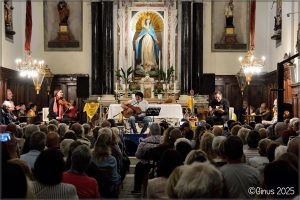 Sul palco – anzi, sull’altare – tre grandi musicisti hanno conquistato il pubblico con un intenso viaggio musico-spirituale tra le canzoni di Faber: Aldo Ascolese, voce e chitarra, affiancato da Gianluca Origone alla chitarra e da Laura Merione al violino. Le loro esecuzioni hanno alternato emozione, energia e profondità, suscitando continui applausi e una lunga ovazione finale.