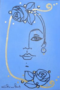 Chino Bert, Donna in bleu, tecnica mista, 20×30 cm, 2006