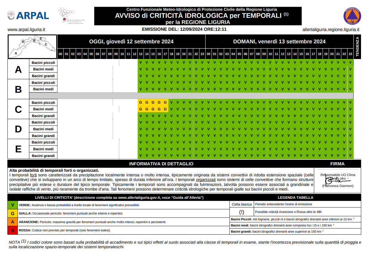 Ecco l’avviso meteorologico emesso oggi: https://www.arpal.liguria.it/images/pdfWS/vigilanza.pdf