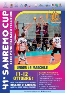 Sanremo. Il polo sportivo del Mercato dei Fiori di Sanremo, in Valle Armea, ospita oggi e domani il gran finale del 41° Memorial Dado Tessitore – Sanremo Cup, con il torneo nazionale Under 15 maschile che vede in campo tre club di Superlega (Modena, Milano e Cuneo) insieme a formazioni emergenti del panorama giovanile italiano come Torino, Acqui, Genova, Carpi e Almevilla (Bergamo). In totale si disputeranno 20 incontri, tutti a ingresso libero.