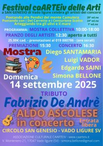 Domenica 14 settembre a San Genesio di Vado Ligure il Festival caARTEiv delle Arti e della Poesia premierà scrittori e artisti da tutta Italia